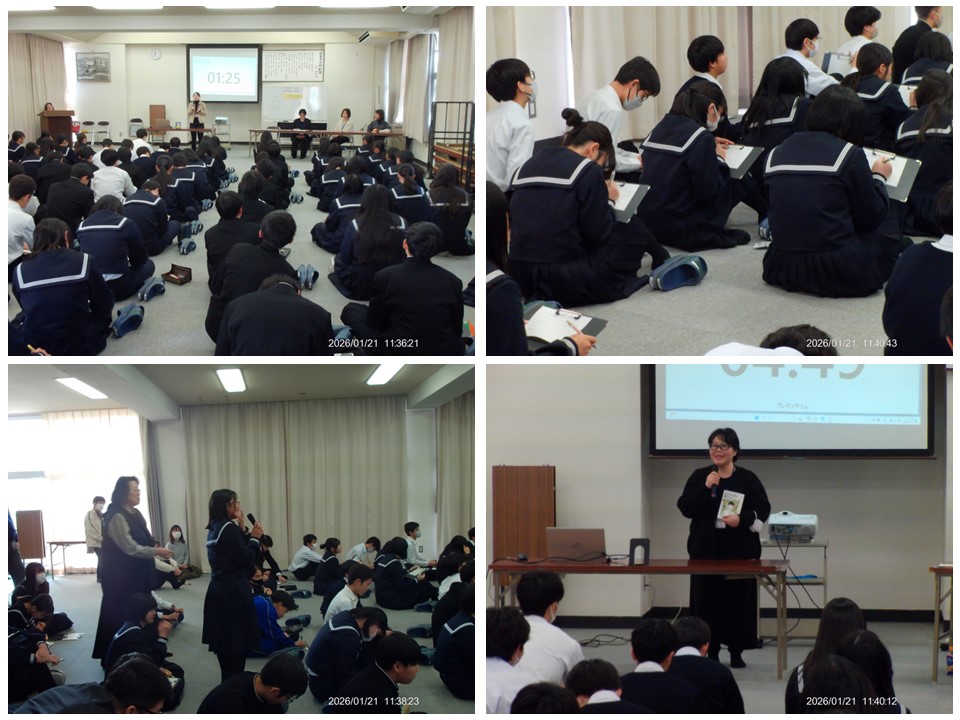 1年音楽:筝の授業、2年国語:百人一首、3年:人権学習・デートDV防止