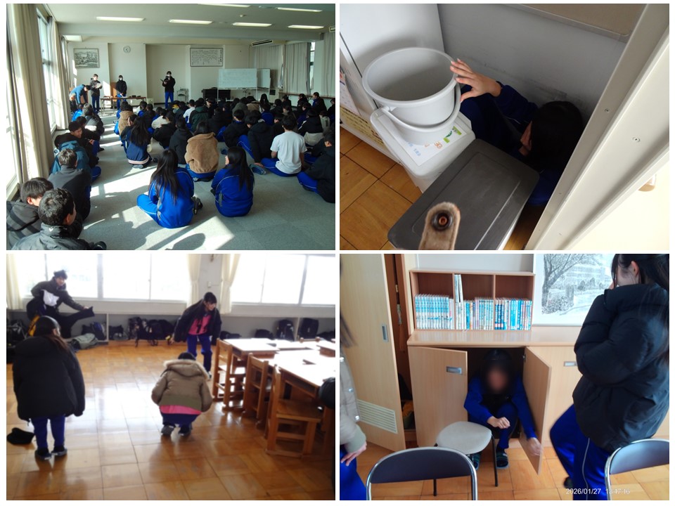 地震対応の避難訓練を行い、避難の仕方や避難経路を確認しました。