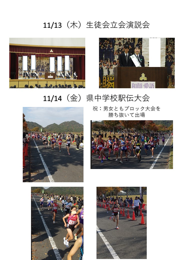 11/13(木)生徒会立会演説会 11/14(金)県中学校駅伝大会
