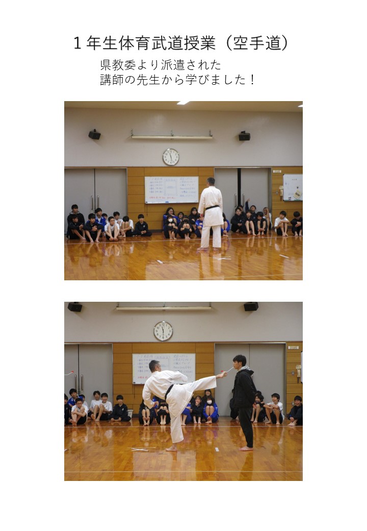 本校では、県教育委員会と連携のもと、1年生は、講師を招いて「空手道」