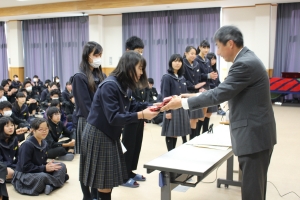 終業式では校歌に続いて、校長の話と表彰伝達がありました。この2学期は多く