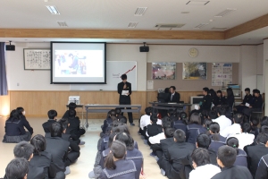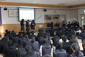 の生徒が様々な賞を受賞しました。そして、2年生の職場体験の発表を代表の事業
