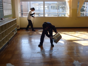 2学期最終日なので、感謝の気持ちを込めて大掃除をし、最後に環境委員と有志