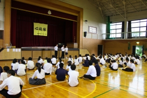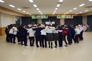 体育祭での縦割り団が、5月の生徒総会で決まりました。黄団は、1年1組、2年1組、