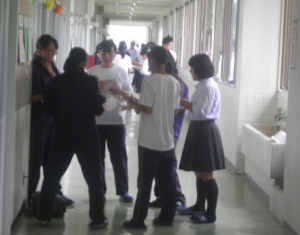 取り組みの前半は、学級ごとに合唱練習をします。合唱練習の時間帯は、校舎内に心地