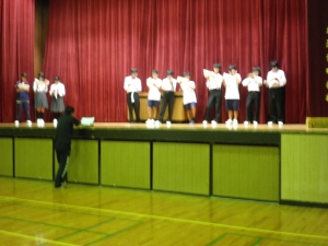 後半は、学年の発表(劇など)に向けた練習や準備をします。劇のキャストは読み合わせ