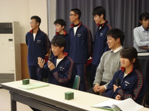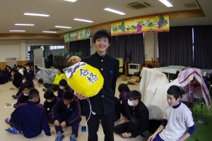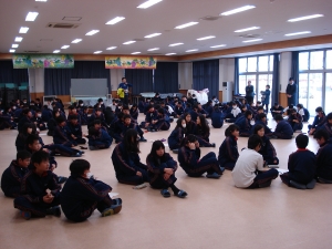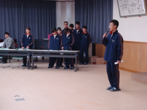カルタ会の最後に、1,2年生から3年生に対して受験激励の贈り物がプレゼントされました。