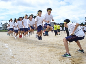 午前中は開会式の後、個人種目、学年種目、学級対抗の大縄跳びを行いました。午後は、