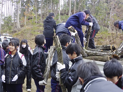 2月9日(火)2年生で椎茸原木搬入を校区内の雑木林で、共同作業所のご協力のもと行われました。
