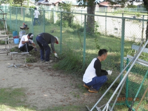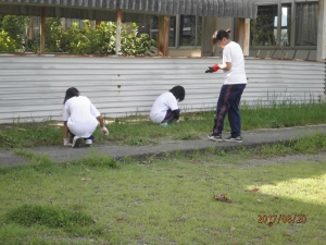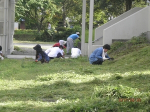 を実施しました。校地内の伸びた草を刈ったり、枝を剪定したりしました。