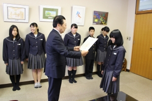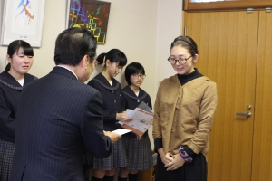 (火)に主催者が来校され、校長室で表彰式を行いました。
