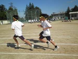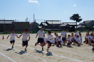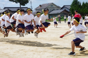 1年:5人6脚・3年:棒引き)、学級対抗の大縄跳びを行いました。