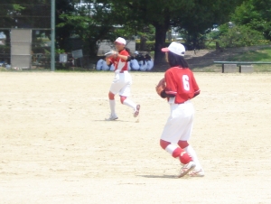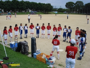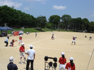 運動公園ソフトボール場で2回戦が行われ、老上中学校と対戦しました。3年生を中心に選手も応援