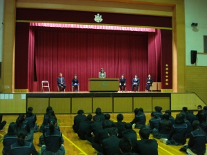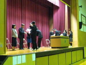 した。生徒会から歓迎の言葉と花束のプレゼントがありました。