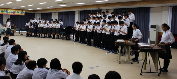 集会に向けて合唱と合奏練習をしてきました。学年ごとに練習の成果を発表してくれ