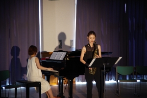 後半は音楽鑑賞として、上野さんのサック演奏と八木さんのピアノ伴奏で、情熱大陸