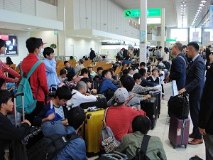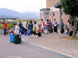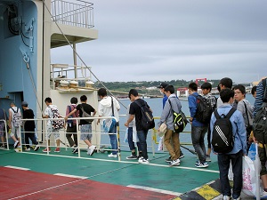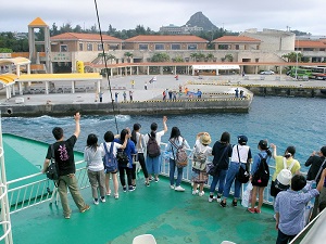 各家庭→伊江港(離村式)→那覇市内(昼食)→那覇空港→伊丹空港→学校