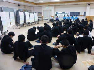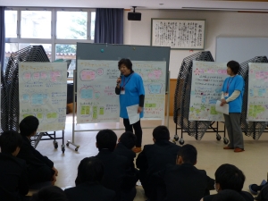 今日は学んだことをまとめた模造紙を見て、指導に来ていただいた社協の方から認知症の