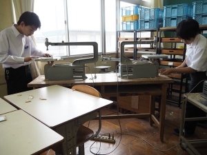 協力して製作しました。材料は学校にある物を使用できるように工夫しました。