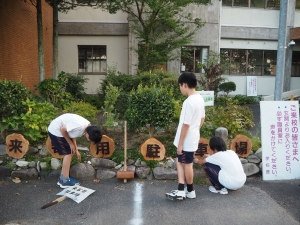 文化部の活動の一環として、来客駐車場の看板を見やすく大きな物を部員3名が