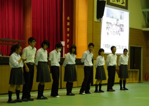 閉会式では、合唱コンクールの表彰と生徒会本部役員から1年間の活動を振り返って