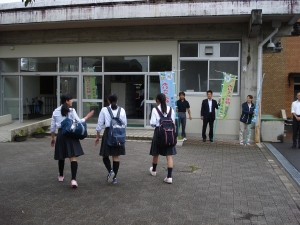 登校してくる生徒に対し、「おはよう!」と声をかけていただくと、「おはようございます」と