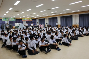 まずはじめに、校長が1学期の感想と夏休みの過ごし方(4つのC)について話