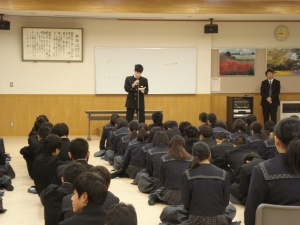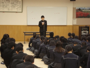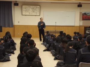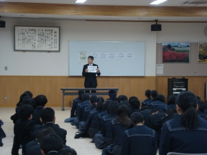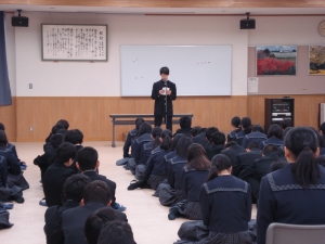 始業式は、まず校長が日本の伝統文化と3学期の心構えについて話をしました。引き続い