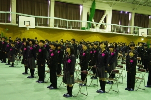 新入生41名の生徒は、緊張した面持ちで入学式に臨んでいました。在校生も温か