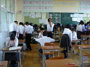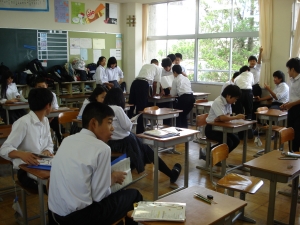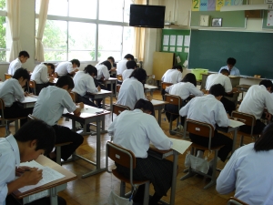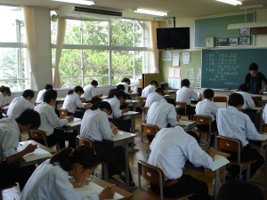 (写真は、2年生の休み時間とテスト中)