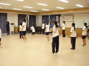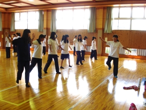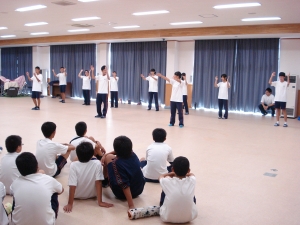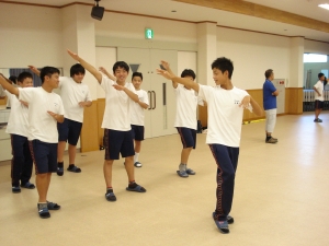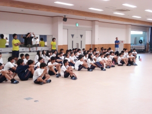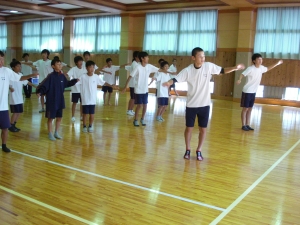 赤団・黄団に分かれて、体育館とユニティで練習を行いました。3年生のリーダーを