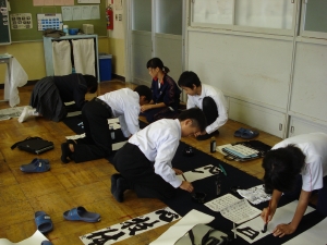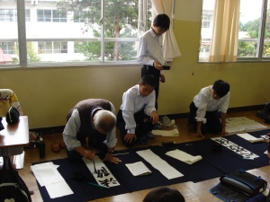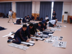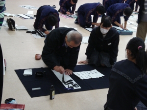 指導をしていただきました。ひとり一人の生徒に字を書く時のポイントを実際に字
