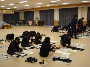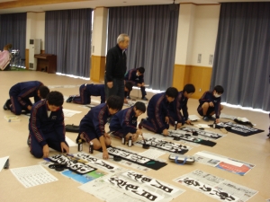 元校長先生に習字の講師として来校いただき、全学年学級の国語の時間に習字の