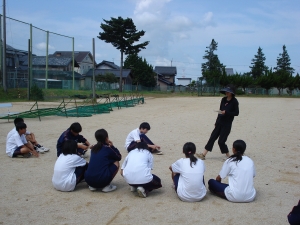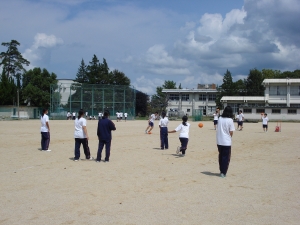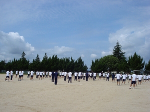 青空の下、強い日差しの中で、頑張って練習に取り組みました。