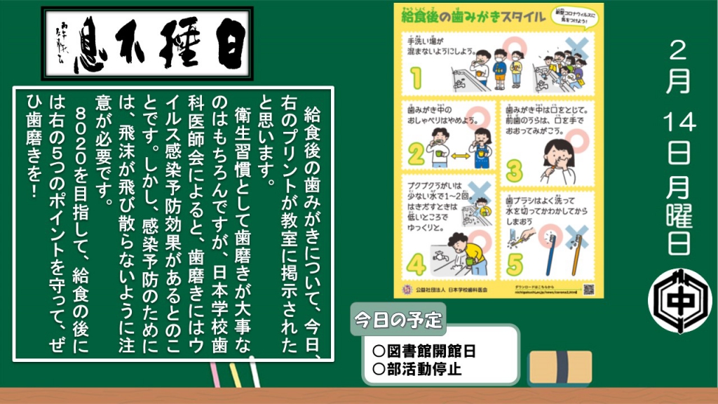 令和3年度3月まで、本校昇降口のディスプレイに、毎日、生徒向けに発信していたものです。 こちらから学校の様子を感じ取っていただければ幸いです。