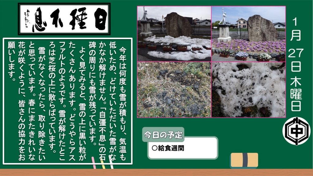 以下は、令和3年度3学期の「日々『自彊不息』」です。