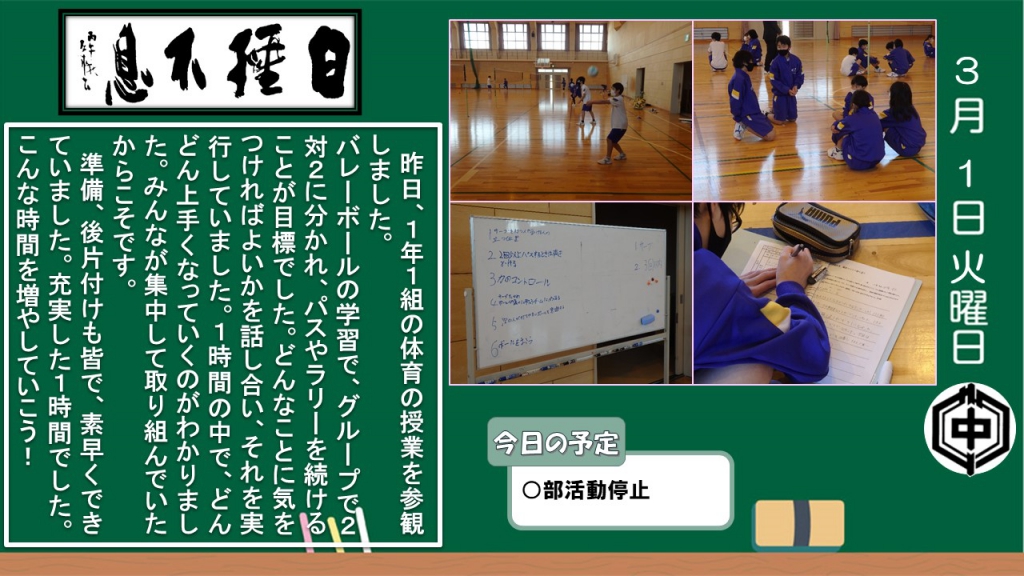 以下は、令和3年度3学期の「日々『自彊不息』」です。