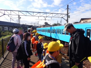 24日(金)は、ひまわり学級が校外学習へ出かけました。まずは五個荘駅から切符を買って近江鉄道に乗り、八日市駅で下車しました。アピアでお弁当を買い、鉄道ミュージアムを見学した後、もう一度、大学前まで電車に乗り布引運動公園で、買ったお弁当を食べ、6年生が計画した遊びなどを行いました。低学年から高学年まで生き生きと活動できたようです。