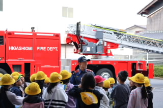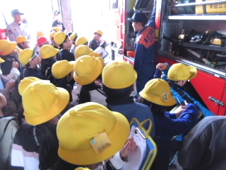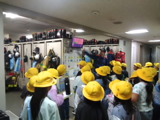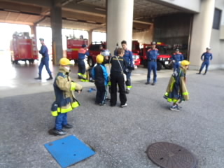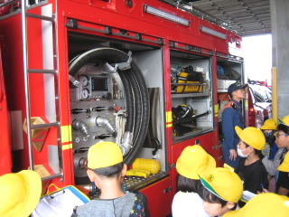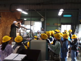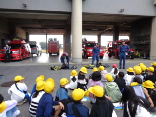 3年生では、校外学習で消防署とあられを作っておられる七福堂へ行きました。消防署では、はしご車やポンプ車など、いろんな消防車を見せていただきました。子どもたちにとっては、防火服の重さや、消防士さんの着替えの速さ、はしご車の高さなど驚くことが満載だったようです。七福堂は、近江商人屋敷の平屋造りで、さざれ石などが置かれた庭園がとても美しいところです。あられ作りを見学させていただき、袋とじや段ボールの組立て、箱詰めなど体験させていただきました。