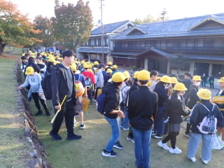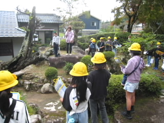 6年生は、近江商人として活躍された中江準五郎氏のお屋敷を見学しました。中江氏は海外にも百貨店を開き、百貨店王と呼ばれた方です。近江商人の屋敷は、部屋としても使えるよう廊下が畳だったり、客の頭上を歩かないよう客間が2階にあったりと、様々な工夫がされていました。子どもたちは興味深くお話を聞いていました。