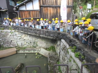 2年生が校区探検で金堂の町に出かけました。ボランティアの方に説明をいただきながらの探検でしたが、初めて知ることが多く興味深かったです。学校の正門のモデルになった安福寺や、県で2番目の本堂の屋根と言われている弘誓寺、よくロケ地に選ばれる大城神社など、五個荘には他ではなかなか見られないほど立派な神社仏閣が多いことに驚きました。2年生の子どもには少し難しかったかのしれません。子どもたちは、歴史のお話よりも、鯉やメダカなど生き物に夢中でした。