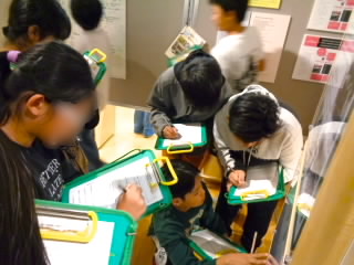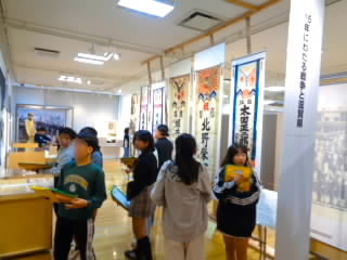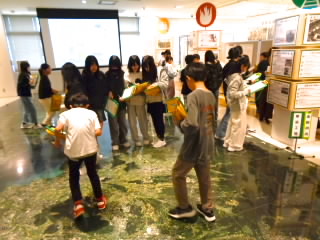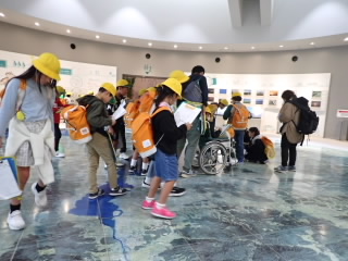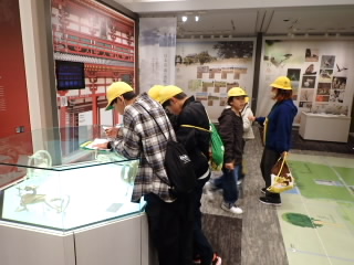 6年生は歴史学習で、戦争のことや戦時中の生活について学ぶため、平和祈念館に行きました。館内見学では、展示してあるものの細かいところまでよく観察し、しおりに書いてある問題に答えていました。また、学習ボランティアの方に疑問に思ったことをたくさん質問し、授業ではわからないことまで知ることができて満足している様子でした。