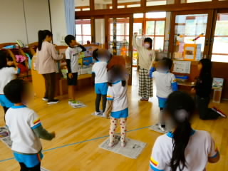 10月27日から29日にかけて、5年生はあじさい幼児園、あさひ幼児園、さくらんぼ幼児園を学級ごとに訪ね、5-5交流(5年生と5歳児の交流)を行いました。子どもたちは、どんな内容をすれば幼児園の子でも楽しんでくれるか5歳児の目線で考え、グループで話し合い、準備を進めてきました。屋内では、折り紙やなんでもバスケット、絵本の読み聞かせなど、屋外ではリレーや鬼ごっこなどをし、5歳児が楽しそうに活動している姿を見てとても満足気でうれしそうでした。