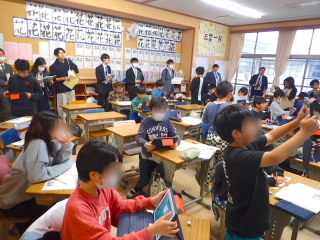 5年生の英語の学習を参観しました。子どもたちは、churchpost officestadiumなど、ALTの声や映像で流れる音声を、私がいくつか聞き取れなかった単語も含めて正確に聞き取っており、低学年から外国語として学習してきた成果を感じました。隣の学級ではミシンを使ってエプロンを作っていました。紐を通す穴が狭すぎて全部ほどかないといけなくなった子もいました。失敗しないように手を貸すよりも、自分でやってみて失敗する方が学びは格段に大きいので、こういう失敗の積み重ねが大切なんだろうと思います。総合では5歳児との交流に向け、班で計画を立てていました。5歳の子の立場になって、ゲームの難易度や、使うボールの固さなど細かなところにまで気を配っていました。