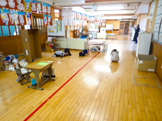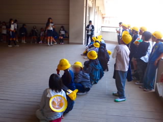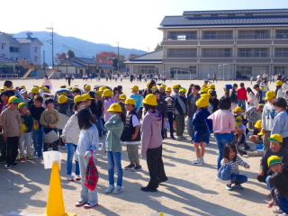 中休みに地震発生時の避難訓練を行いました。いつもの避難訓練とは違い、今日は子どもたちにいつ起きるか知らせていませんでした。教室で、地震が起きたときどうするのか、朝のうちに確認はしていたので、ほとんどの児童がすぐにその場にしゃがむことができました。中にはせっかく運動場で遊んでいたのに、校舎内へ入ってきてしまう子もいましたが、そういう失敗が本当に起きたとき間違わないために大事だと思います。教室や運動場などバラバラになって遊んでいる中での訓練だったので、全員集合するか心配だったのですが、だれも欠けることなく集まることができました。