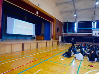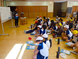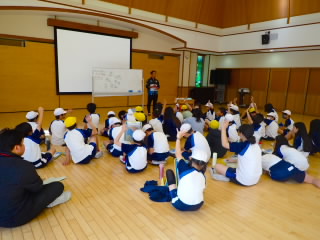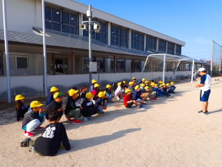 2時間目に避難訓練を行いました。今回は理科室から出火したという想定です。1~6年までの子どもたちは思った以上に静かに落ち着いて避難していました。子どもたちにはお話の中で、災害が起こった時は、何がどこで起きているかを知ることが自分の命を守ることにつながり、そのためには「おはしも」の「し=しゃべらない」が大事ということを話しました。また、