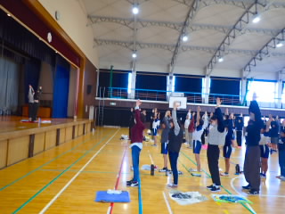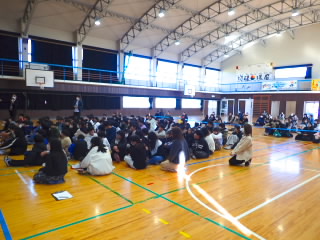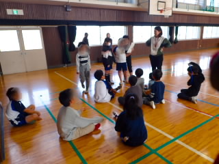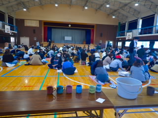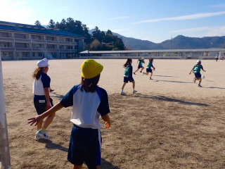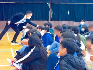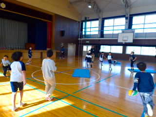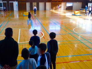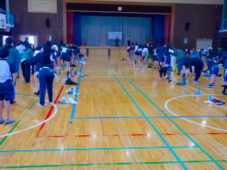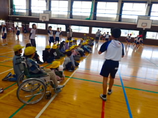 商工会青年部の皆様、早朝からあいさつ運動ありがとうございました。1時間目には、ひまわり学級が詳細な指導案を作り「自立」の学習を公開してくれました。「自立」とは心身の調和的発達の基盤を培うことをめざした学習です。今日の学習では、心理的な安定や人間関係に形成、体の動き、コミュニケーションをめあてにしていました。子どもたちは、友だちを応援したり、時には言い合いをしたりしながら、運動を楽しんでいました。