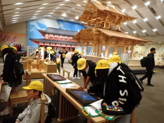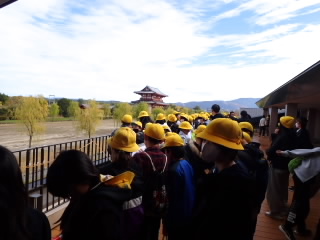 1日目、平城宮跡では、まずVRシアターの120度のパノラマ画面で当時の平城京を見ました。1000年以上前に造られたとは思えない都の規模の大きさ、美しい建築にみんな驚いていました。「いざない館」では、しおりにあるたくさんの問題を展示やその説明を見ながら一生懸命答えていました。ウォークラリーでは奈良の大仏を見上げながら、その大きさに初めて見る子はみんな驚いていました。2日目のキッザニアでは、パソコンを組み立てたり、自動車を修理したり、お寿司を握ったりといろんな職業にチャレンジしていました。思い出に残る修学旅行になったのではないでしょうか。