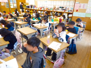 今日は地震が起きたときの避難訓練をしました。運動場へ避難する予定でしたが、前日の雨で運動場のコンディションが悪かったので、教室内で緊急地震速報の後、机の下にもぐる訓練のみをし、避難訓練の大切さがわかるビデオを見ました。お話では、地震がいつ起きるかわからないから怖いこと、でも必ず起きること、南海トラフ地震の発生確率が今年上がったこと、自分の命は自分で守れるようになってほしいこと、そのためには今地震が起きたら何が危険かいつも考えるようにすることが大切ということを話しました。