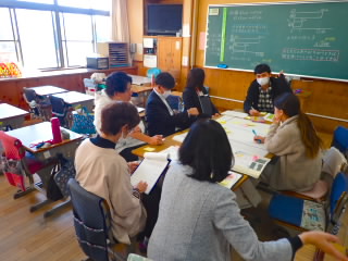 6年1組が算数「比」の授業を提供してくれ、研究会を開きました。授業では、子どもたち全員が「わかりたい」「学びたい」という姿を見せてくれとてもよかったです。その後、全教員が集まって研究会を行いました。タブレットを使った考えの交流がよかったことや、教材の提示の仕方、グループ交流の方法などが話題として挙がっていました。こういう機会を重ねることで、教員一人ひとりの授業力アップにつなげていきたいです。